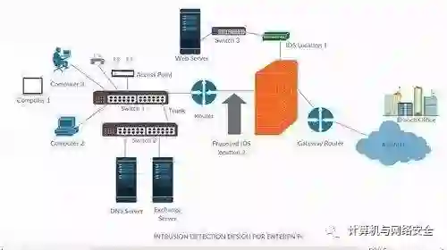 路由器是大多数网络流量的必经之路。特别是通往外部网络的路由器可以直接连接到互联网。这使得这些路由器成为网络安全设计中的安全要塞,也可以作为IDS和IPS系统的安装地点。目前,已经有许多第三方软件可以与路由器集成,以此构筑外部威胁的第一道防线。