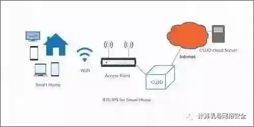 CUJO是一种为家庭自动化系统提供商业级安全防护的设备。它是一个预建好的防火墙/IDS系统,不仅可以完成威胁分析,还可以实现威胁防护。 CUJO的另一个特点是,它将连接到一个基于云的数据库,智能地查询和检查数据包的行为异常。该数据库通过其他受保护的家庭的签名或模式不断进行更新,从而实现了所有互联的CUJO设备之间的安全信息共享。