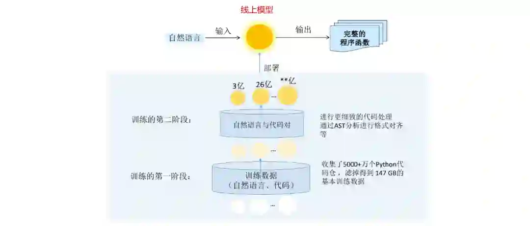 PanGu-Coder将训练分为了两个阶段:第一阶段使用了全量的代码数据进行训练;第二阶段选择了更符合目标任务的自然语言和代码对作为训练数据对模型进行调优。