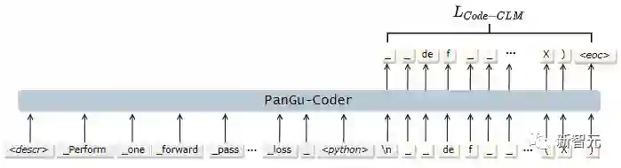 在第二阶段的训练中,PanGu-Coder采用了专门为代码生成而设计的Code-CLM作为其损失函数。如图3所示。在训练过程中,Code-CLM仅保留代码部分的Loss计算结果,同时忽略了自然语言部分的Loss。