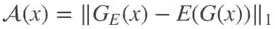 对于第三部分重构图像编码得到的潜在变量 ẑ ,这部分对于正常数据而言,希望得到的 ẑ 与原始数据直接编码得到的 z 无差别最好,也就是对于最好的得分判断,对于正常数据而言理想状态下希望。当然这是最理想的状态,但是对于正常数据还是希望 A(x) 越小越好,所以引入了一个潜在变量间的误差优化。