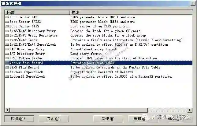 下面具体地介绍一下。单击WinHex的菜单项“视图”->“模板管理”命令,出现如图8所示的对话框。