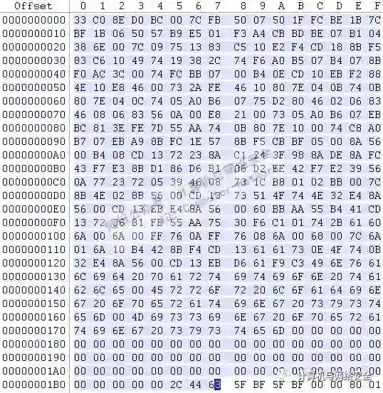 为了能写出程序,先进行一次对引导区的手动分析,使用的工具是WinHex。