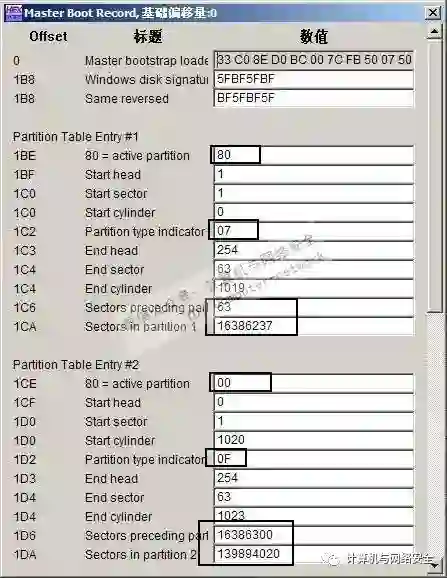 当打开磁盘后,会看到很多密密麻麻的十六进制数据,这些数据很像学习PE文件结构时的情况。一眼看上去不能理解,当根据其各种不同的结构进行解析后就一目了然了。因此,重要的是学习其各种结构。这里介绍一下组成引导区的各个结构体。