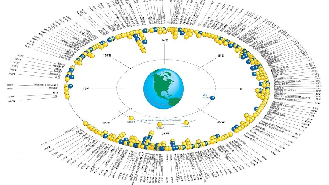 现在地球这条同步轨道不仅位置全部被占满了,而且国际上注册排队的卫星数量达到2000多颗。