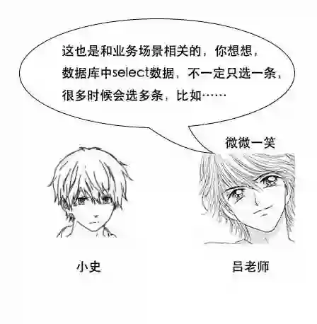 吕老师:这也是和业务场景相关的,你想想,数据库中select数据,不一定只选一条,很多时候会选多条,比如按照id排序后选10条。
