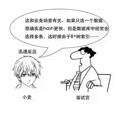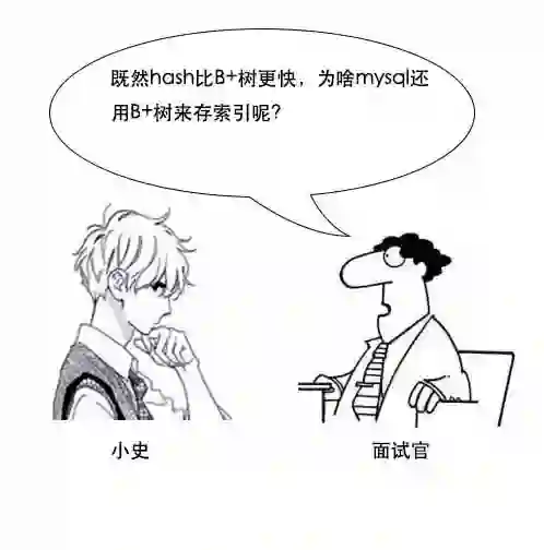小史:这和业务场景有关。如果只选一个数据,那确实是hash更快。但是数据库中经常会选择多条,这时候由于B+树索引有序,并且又有链表相连,它的查询效率比hash就快很多了。