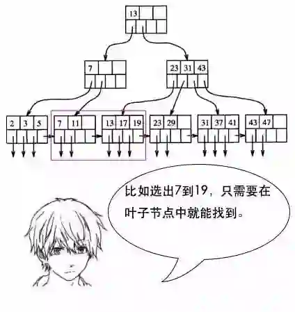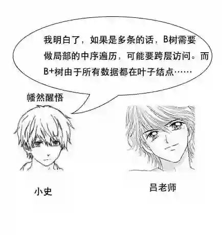 小史:我明白了,如果是多条的话,B树需要做局部的中序遍历,可能要跨层访问。而B+树由于所有数据都在叶子结点,不用跨层,同时由于有链表结构,只需要找到首尾,通过链表就能把所有数据取出来了。