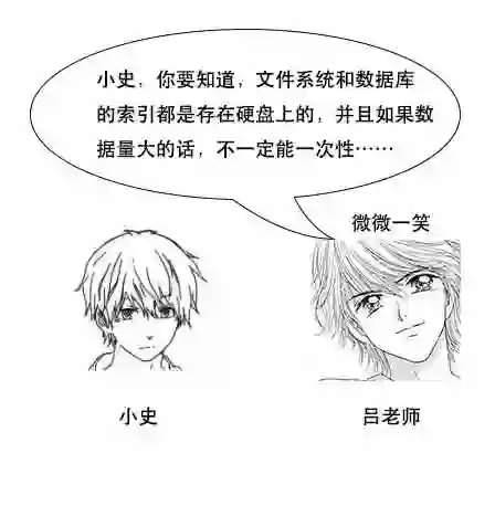 吕老师:小史,你要知道,文件系统和数据库的索引都是存在硬盘上的,并且如果数据量大的话,不一定能一次性加载到内存中。