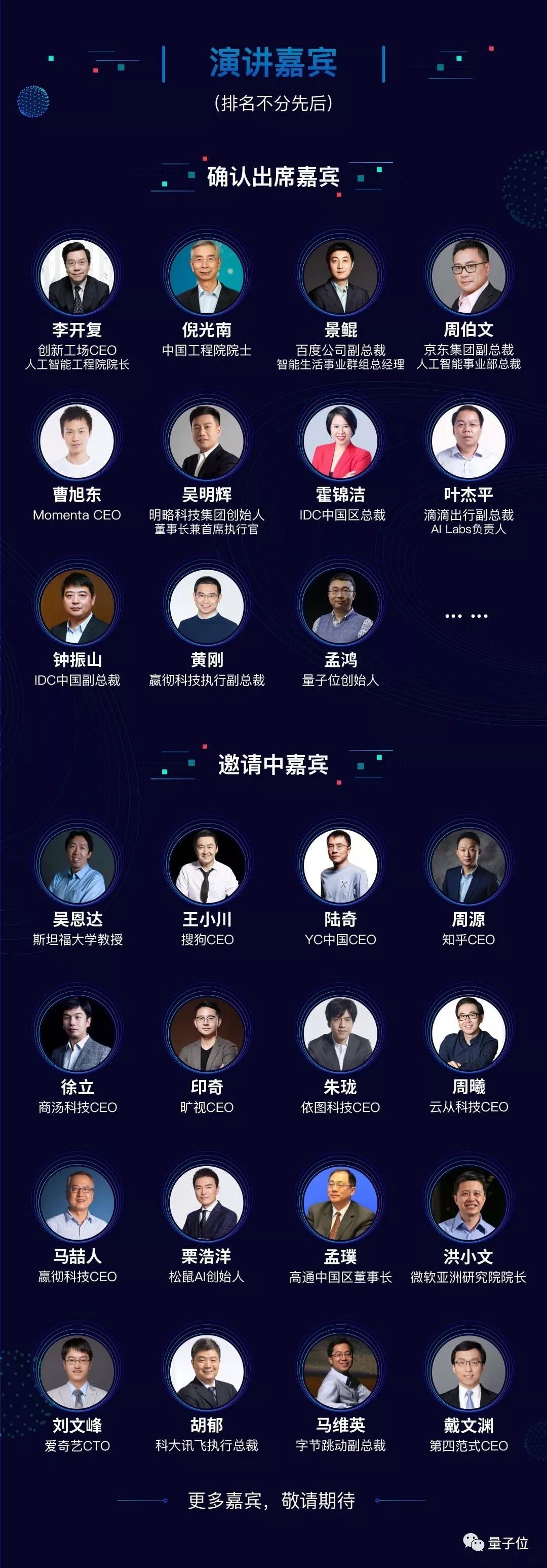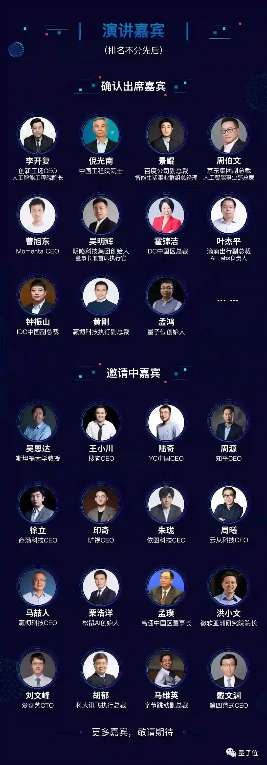 令人振奋的是,更多AI领域的大咖、资深从业者、学者专家,也在陆续确认到场中,我们不仅希望创造一次集体认知学习和提升,还希望创造线下交流,更进一步推动中国AI向前发展。