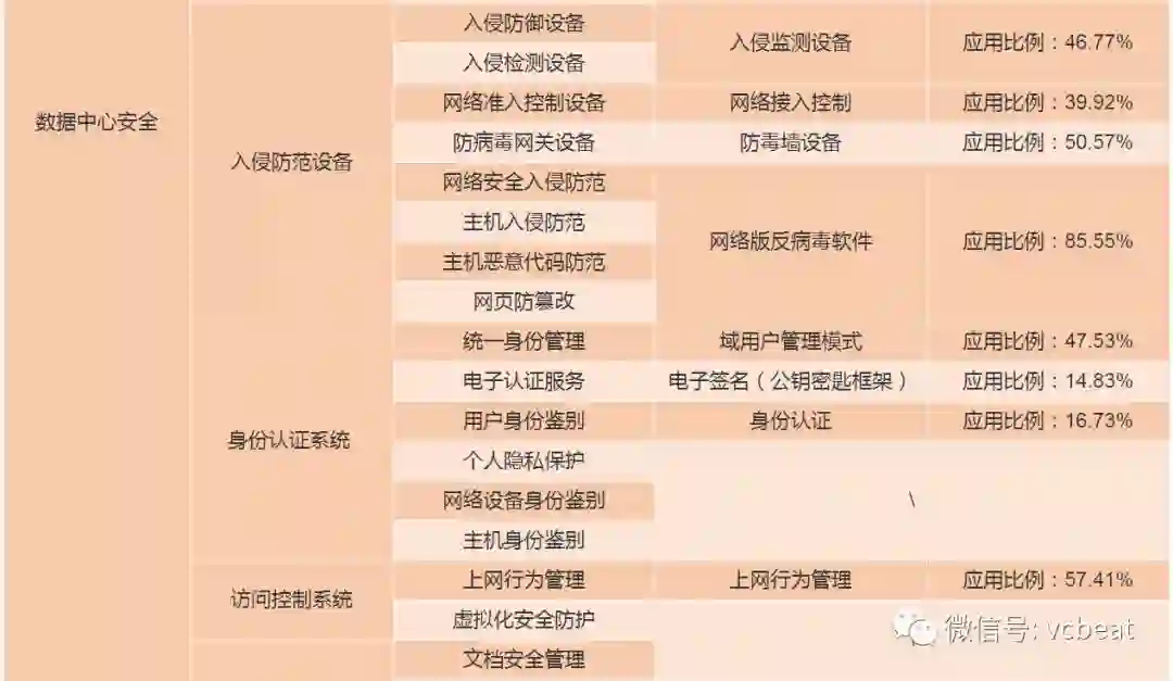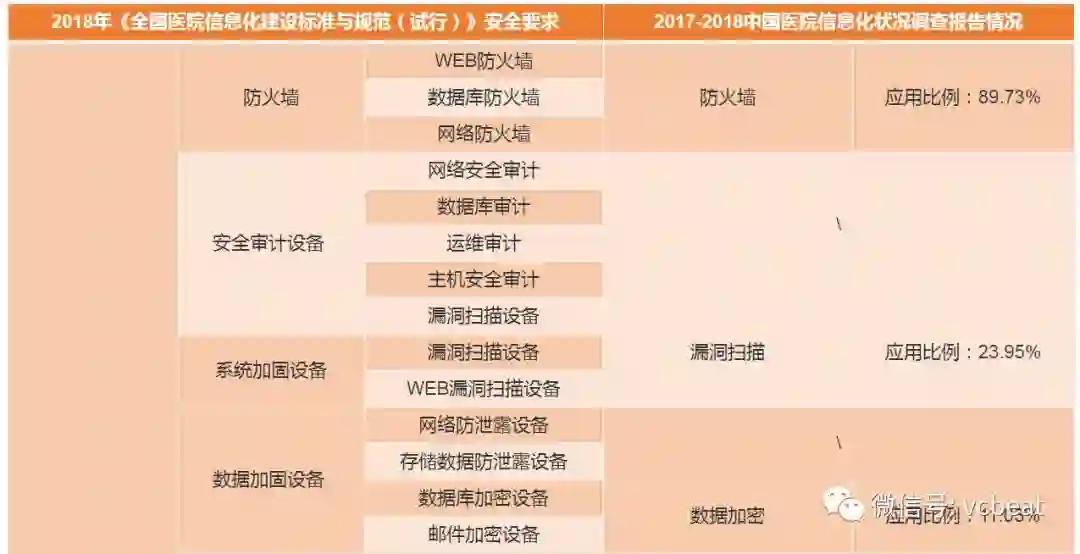 下面这张表,是动脉网结合2018年《全国医院信息化建设标准与规范(试行)》安全要求 ,以及中国医院协会信息管理专业委员会CHIMA发布的《2017-2018中国医院信息化状况调查报告》中的相关数据得出。将两者相互印证之后,动脉网得出了目前三级医院信息安全建设情况: