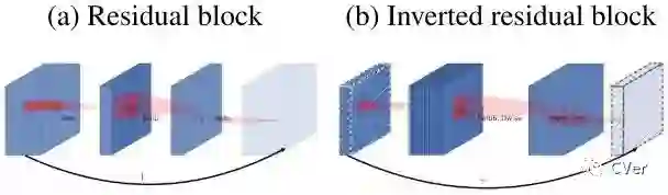 2.ResNet先降维,卷积,再升维,而MoblieNetV2先升维,卷积,再降维(即ResNet是沙漏形,而MobileNetV2是纺锤形)。