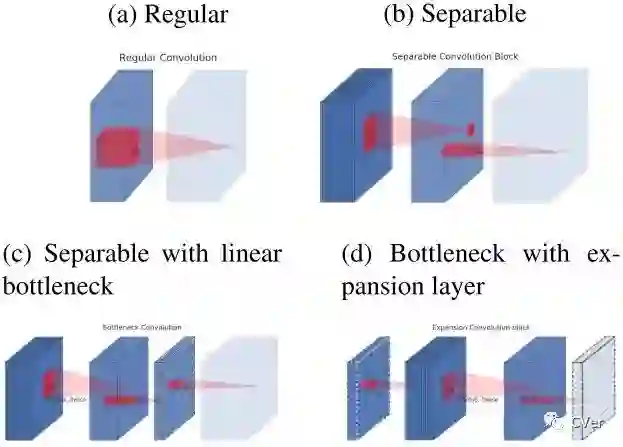 都采用了Depth-wise Convolution和Point-wise Convolution组合的方式(Depth-wise Separable Convolution)来提取特征。该操作可以成倍减少时间复杂度和空间复杂度。
