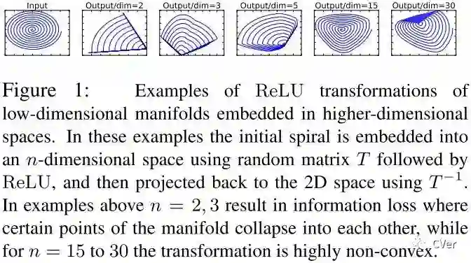 1.如果the manifold of interest经过ReLU之后信息保持完整,那么该操作实际上退化成了线性变换。