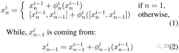 在每个阶段的开始,学习一个残差公式 。然后使用concat将残差两个分支的特征融合起来。