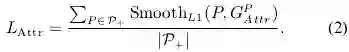 LAttr采用通用检测框架中的回归loss,可以采用欧式距离、SmoothL1距离以及IoU距离,为了使得和其他算法具有可比性,本文这里采用的是SmoothL1距离: