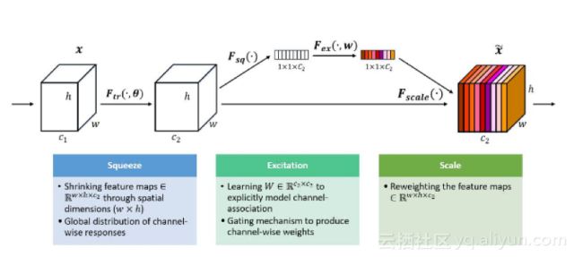 2017年ILSCRV 的获奖作品Squeeze-and-Excutation Networks(SENet)在比赛中错误率为令人难以置信的2.251%,该作品适用于挤压、激励和缩放操作。SENets并没有为特征通道的整合引入新的空间,而是开展了一项新的“特征重新校准”策略。