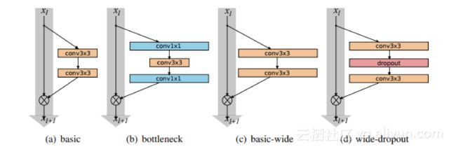 作者将最终的网络结构命名为宽残差网络(WRNs)。与ResNet的卷积层相比,Wide ResNet可以具有2-12倍甚至更多的特征映射。