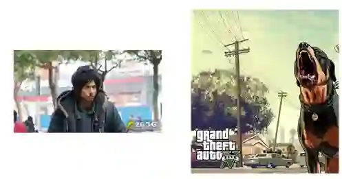 使用两个GTA5的图片,融合摩托车大哥到大部队中,作为图9-23所示的原始图片的引导特征图: