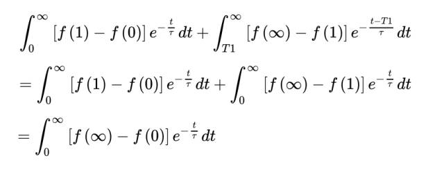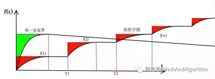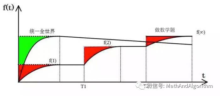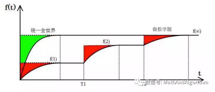 总之,从开始到结束,按照时间把这个心理升差积分起来的绿色部分面积,就是下面这个式子: