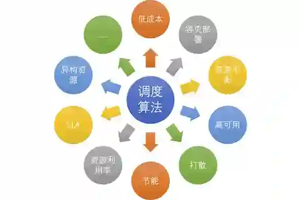 应用的容灾:容灾其实也经常和高可用放在一起,如果一个应用有多个应用实例,但是都部署在一个机房,如果机房断电,那么应用也就不能提供服务了,没有高可用了。解决这个问题需要的容灾部署,也就不同维度地打散。调度算法需要尽量让同一个应用的不同实例部署在不同的宿主机、不同的机架、不同的机房、不同的数据中心、不同的城市、真是不同的国家;这种容灾甚至可以体现在更高一层,几个重要应用之间的所有实例,也要尽量打散。