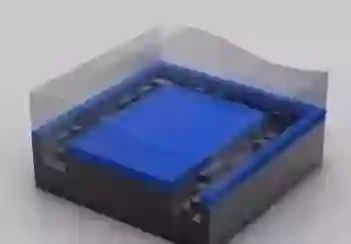 图中蓝色部分就是在晶圆旋转过程中浇上去的光刻胶液体,类似制作传统胶片的那种。晶圆旋转可以让光刻胶铺的非常薄、非常平。