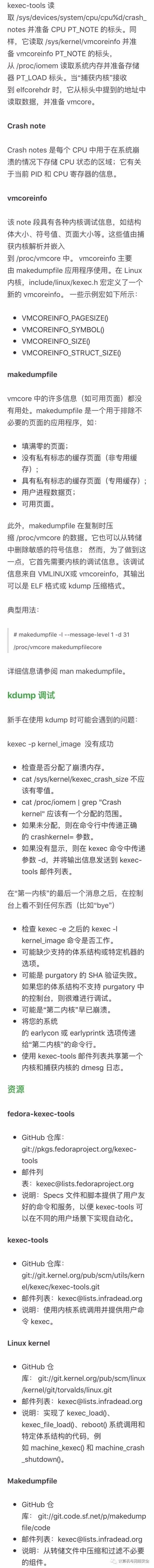 更新 vmcoreinfo 备注(请参阅 crash_save_vmcoreinfo());