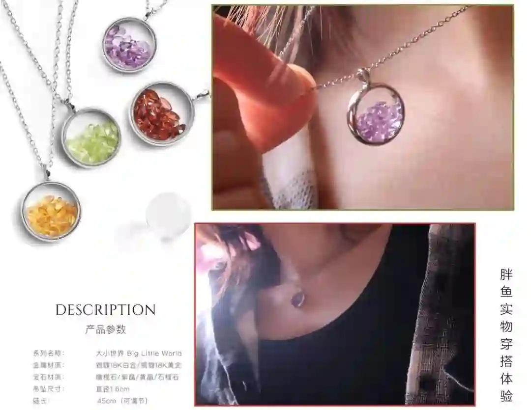 这一款其实是最突破我体验的,因为第一眼看到时我觉得这款比较挑剔衣服穿搭。但是试了几套下来我发现我错了,这款项链尽管颜色比较丰富,但是!只要是可以露锁骨的穿搭,都可以配这款项链,而且哪个颜色都可以!