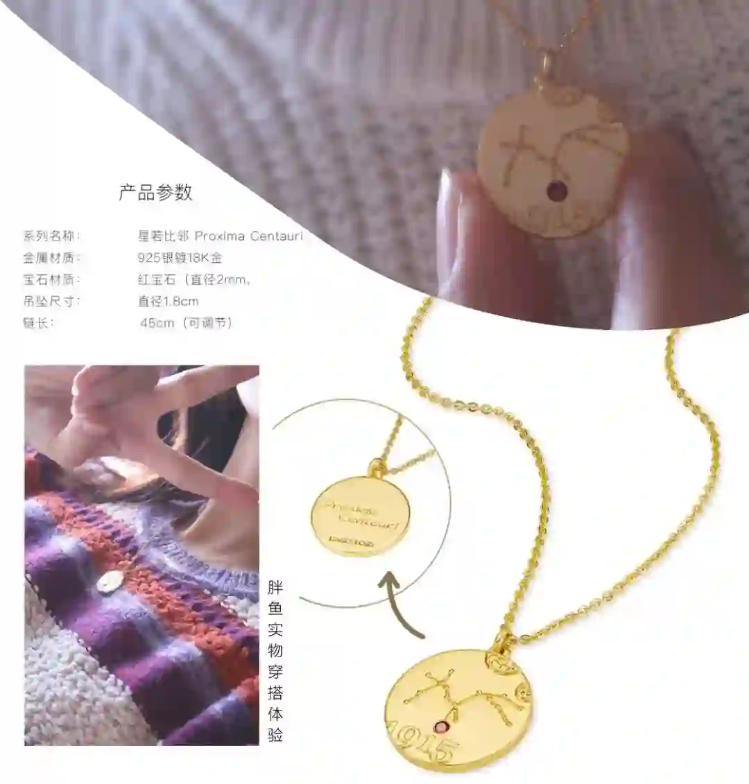 星若比邻是唯一一款不是白金款式的,我个人其实对黄金色系还真不怎么太感冒,因为本身感觉搭配起来不管是色彩还是类型上都局限很多。星若比邻这款利用了硬币款式进行大面积的黄金色系打底,配合了一颗高饱和度的缅甸红宝石进行颜色点缀,那一抹红色感觉刚好中和了黄金色系带来的压制力。同时利用半人马座星图图案进行了线条上的阐述,进一步舒缓了黄金色系的严肃。