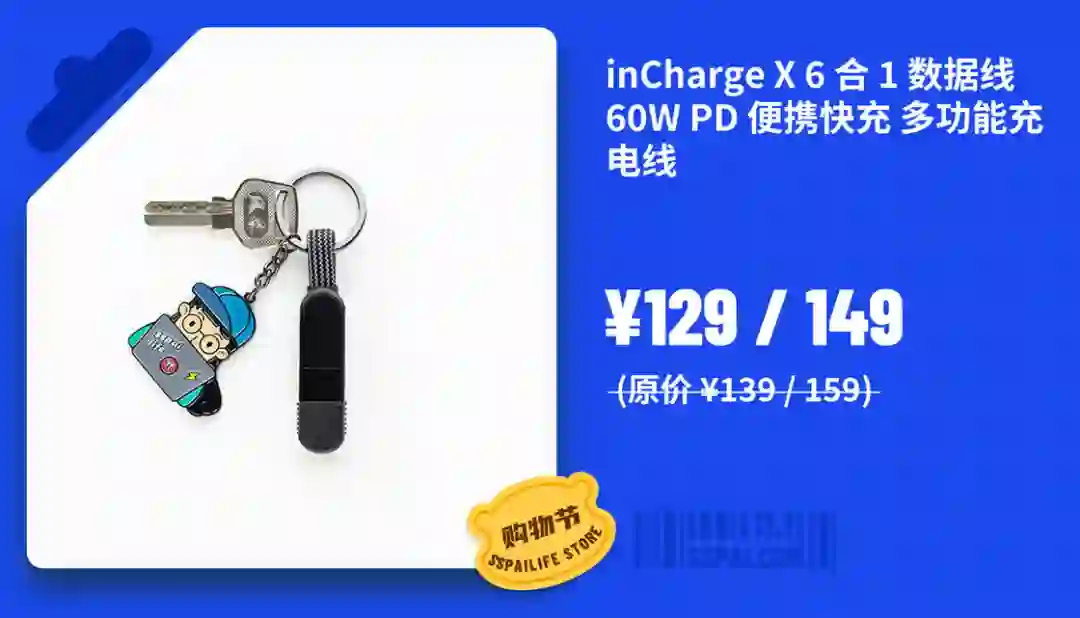 99微在来家是他可着以就一后!https://m.tb.cn/h.fhYiorV?sm=7f8528 【少数派】inCharge X 数据线 PD 60w 6合1多功能充电线 便携快充