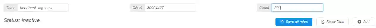 首先配置一个输出表的规则组, 查看heartbeat_log_new这个topic中,我们直接实时的可视化操作配置。
