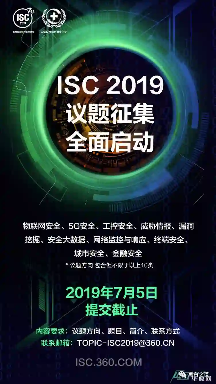 了解第七届互联网安全大会(ISC 2019)更多信息,请点击大会官网链接:isc.360.com