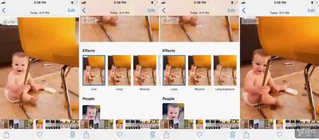 新的效果包括循环、来回播放或长曝光,习惯使用 Instagram 和 Snapchat 的用户对于这些效果应该不陌生。