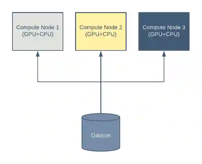 图 1:在这个深度学习集群架构中,有三个计算节点使用中央数据集。