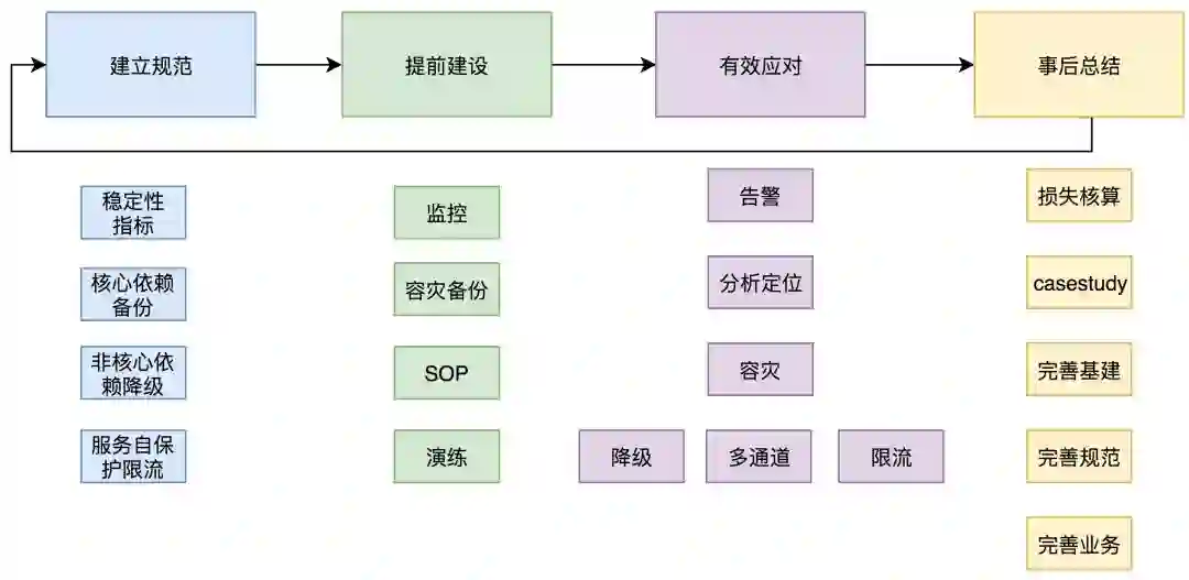 我们将问题依照生命周期划分为三个阶段:发现、定位、解决,围绕这三个阶段的持续建设,构成了美团外卖高可用建设体系的核心。
