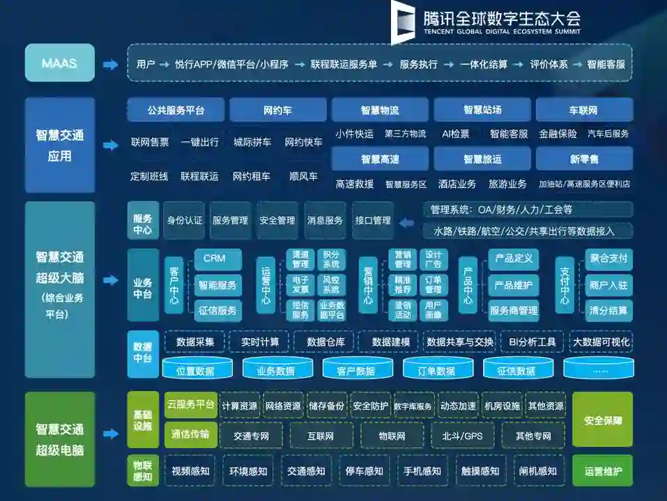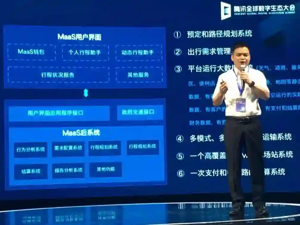 2019年5月21日至23日,2019年腾讯全球数字生态大会在昆明滇池国际会展中心隆重举行。这是一次技术分享的大会,也是一次产业互联网的盛会,见到很多学到很多悟到很多,而我有幸在大会共享舞台上作了《基于MaaS的智慧交通体系》的分享。