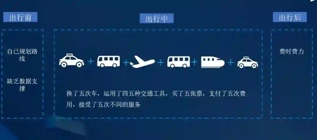 作为IT人,我们都很了解IAAS(基础设施即服务)、PAAS(平台即服务)、SAAS(软件即服务),那么MAAS是什么呢?MAAS就是出行即服务。在信息技术快速发展以及智慧城市热闹非凡的当下,我回老家的交通方式仍然那么麻烦,先是从珠海家里打个出租车或专车到机场大巴站场,然后乘坐机场大巴到机场,飞到柳州机场,再乘坐柳州机场大巴到柳州动车站,乘坐动车到来宾站后,再打出租车或专家回到家里。