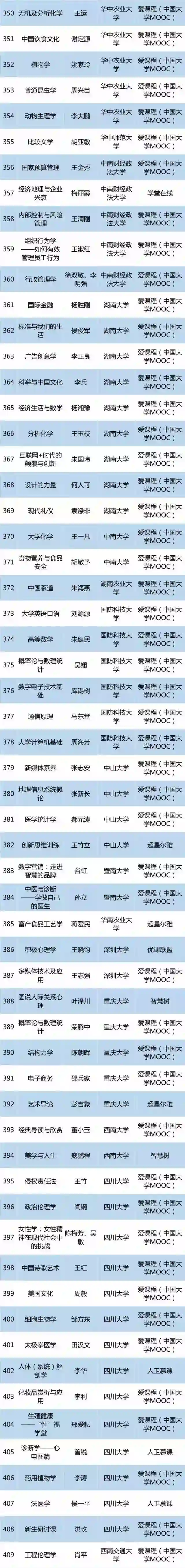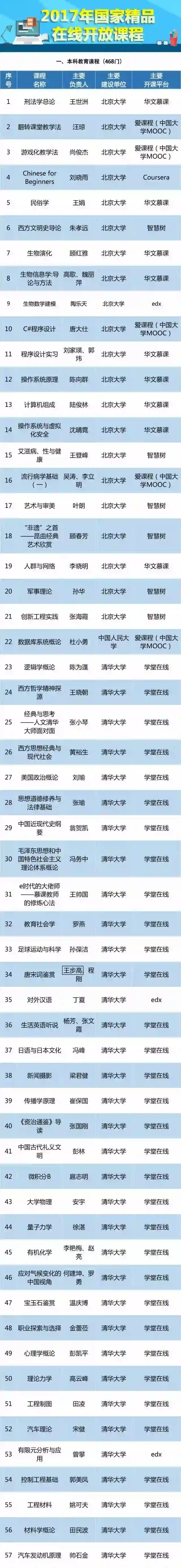 教育部认定的490门国家精品在线开放课程有哪些?有没有你感兴趣的?一起来看全名单↓↓↓