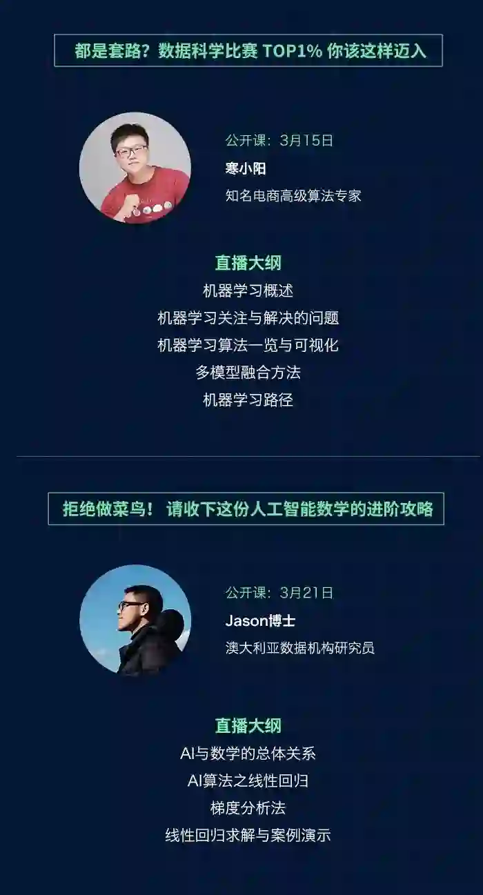 3月15日和21日,网易云课堂准备了2场关于人工智能入门的直播公开课(免费),从数学基础和算法角度,带你走近人工智能。