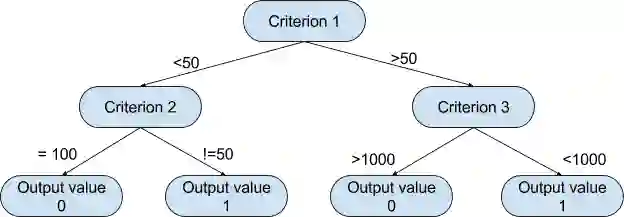 基于这样一棵树,算法可以根据相应的标准值决定在每个步骤中遵循哪条路径。算法选择分割标准的方式和每个级别的相应阈值,取决于候选变量对目标变量的信息量,以及哪个设置最小化了所产生的预测错误。