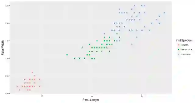 为了研究,我们用他们的花瓣测量方法绘制了数据集的所有数据点,如下图所示: