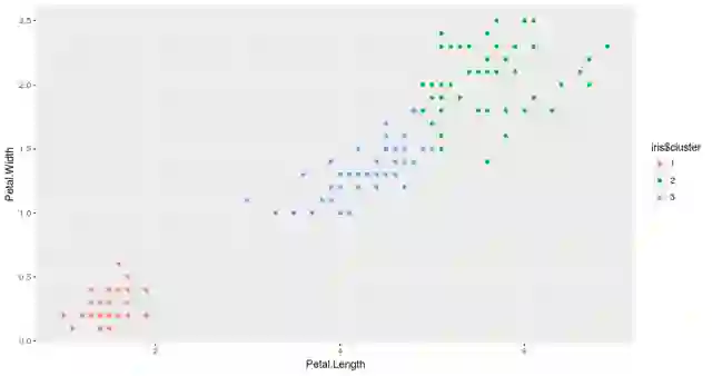 基于花瓣的度量值,我们将使用3-means clustering方法将数据点聚集成3组。