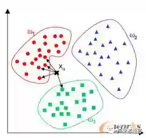 (6)K-近邻(k-Nearest Neighbors,KNN):这是一种分类算法,其核心思想是如果一个样本在特征空间中的k个最相邻的样本中的大多数属于某一个类别,则该样本也属于这个类别,并具有这个类别上样本的特性。该方法在确定分类决策上只依据最邻近的一个或者几个样本的类别来决定待分样本所属的类别。 kNN方法在类别决策时,只与极少量的相邻样本有关。由于kNN方法主要靠周围有限的邻近的样本,而不是靠判别类域的方法来确定所属类别的,因此对于类域的交叉或重叠较多的待分样本集来说,kNN方法较其他方法更为适合。