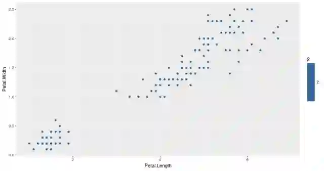 从现在开始,通过将花瓣长度和花瓣宽度的值应用到定义的线性关系中来,新出现的数据点我们也可以预测它的长度了。
