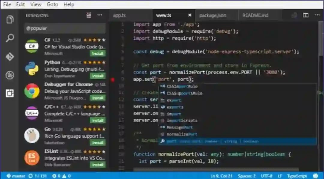 如果对比下Visual Studio和Visual Studio Code这两个产品的界面,就会发现差距挺大的, 这个Visual Studio Code更加“时尚”,它的默认界面风格,字体颜色,甚至于设置方式都更加接近其他一些开源的编辑器如Sublime, Atom。
