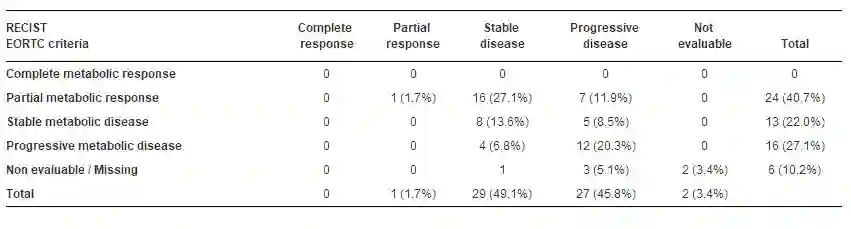 表1:疾病控制率(RECIST及EORTC标准)