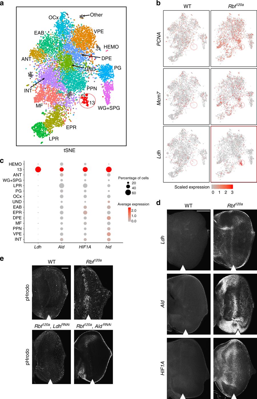 Rbf 突变的眼盘是应用 scRNA-seq 方法以及研究会使 Rbf 突变细胞对凋亡敏感的那种特定细胞环境的理想设置。
