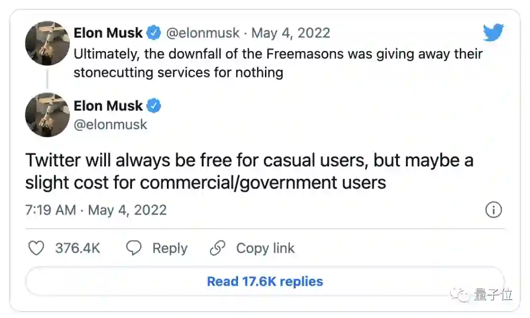 近日,马斯克发推称,Twitter将始终对普通用户免费,但政府和商业用户可能需要对其支付少许费用。
