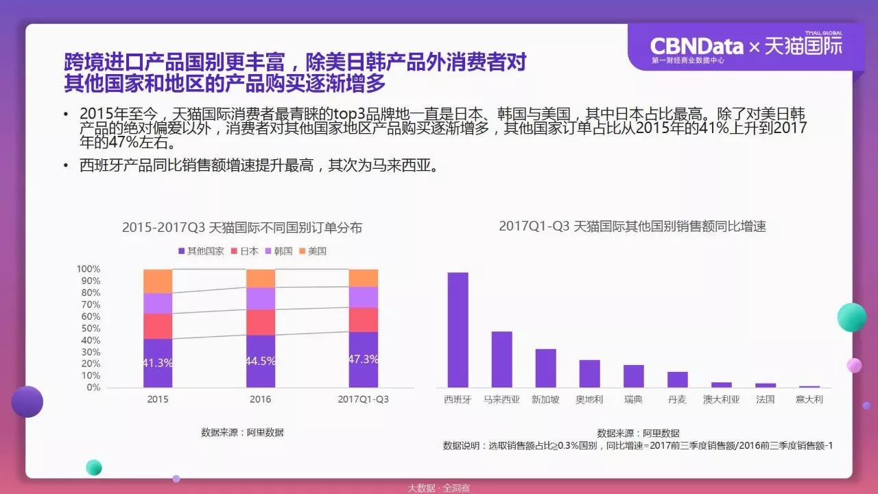 用安瓶平衡油腻,用燕窝撑起苹果肌,用美容仪甩掉水肿,重塑鹅蛋脸庞,不巧,我们正是你们口中那油腻中年范儿的90后。是不是觉得误会颇深?到底有多深,且看CBNData《报告》怎么说:按进口产品国别订单分布可见,除了传统的日本、韩国、美国位列前三之外,天猫国际消费者对其他国家和地区产品的偏好开始显现,从2017年第三季度天猫国际其他国家销售额同比增速来看,西班牙提升最高,其次为马来西亚。而这些国家的招牌产品中正隐藏了90后和95后的冻龄秘籍。