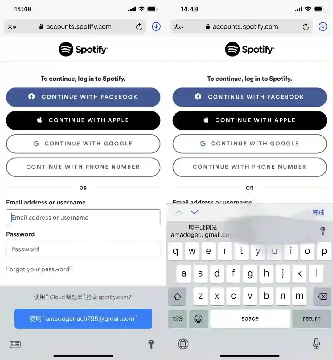 接下来每次登录该网站,iCloud 钥匙串都会有两种提示方式——一是和强密码生成的界面一样,占据了屏幕下方的系统提示;二是直接出现在键盘上方。使用体验也很好,一键填写帐号密码,十分方便。